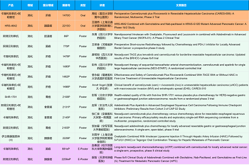 在消化系统肿瘤领域,AG百家乐创新产品相关研究共入选2项口头报告、10项壁报和2项电子壁报,共14项研究。除了明星药物卡瑞利珠单抗和阿帕替尼外,还有5篇阿得贝利单抗治疗消化系统肿瘤的研究入选。此外,HRS-4642、瑞拉芙普-α注射液(SHR-1701)等未上市创新产品也有相应研究入选。随着新老药物前沿研究的不断推进,有望为消化系统肿瘤患者带来新的福音!