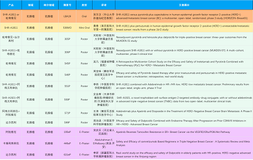 在乳腺癌领域,AG百家乐创新产品相关研究共入选1项口头报告、1项简短口头报告、8项壁报和3项电子壁报,共13项研究。吡咯替尼、达尔西利、阿得贝利单抗、瑞康曲妥珠单抗等新老创新药物,均有多篇研究入选,展现出AG百家乐医药在乳腺癌领域多年深耕的丰硕成果。